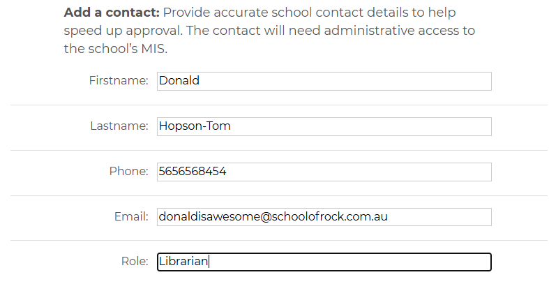 4. Add your contact details. This is to ensure that the requester is an admin on the Wonde account.