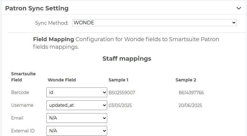 2. Select Patron Sync >> Change the Sync Method to WONDE