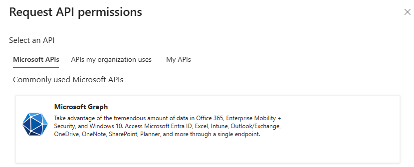 From the options available you wnat to find Microsoft Graph.