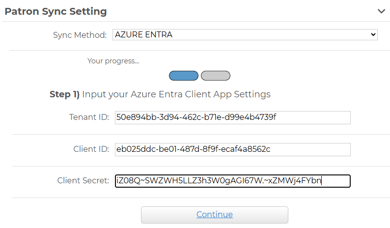 - Expand the Patron Sync Setting and select Azura Entra from the drop down.