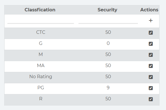 If a video is rated M with a security of 50, only teachers/staff can view it.